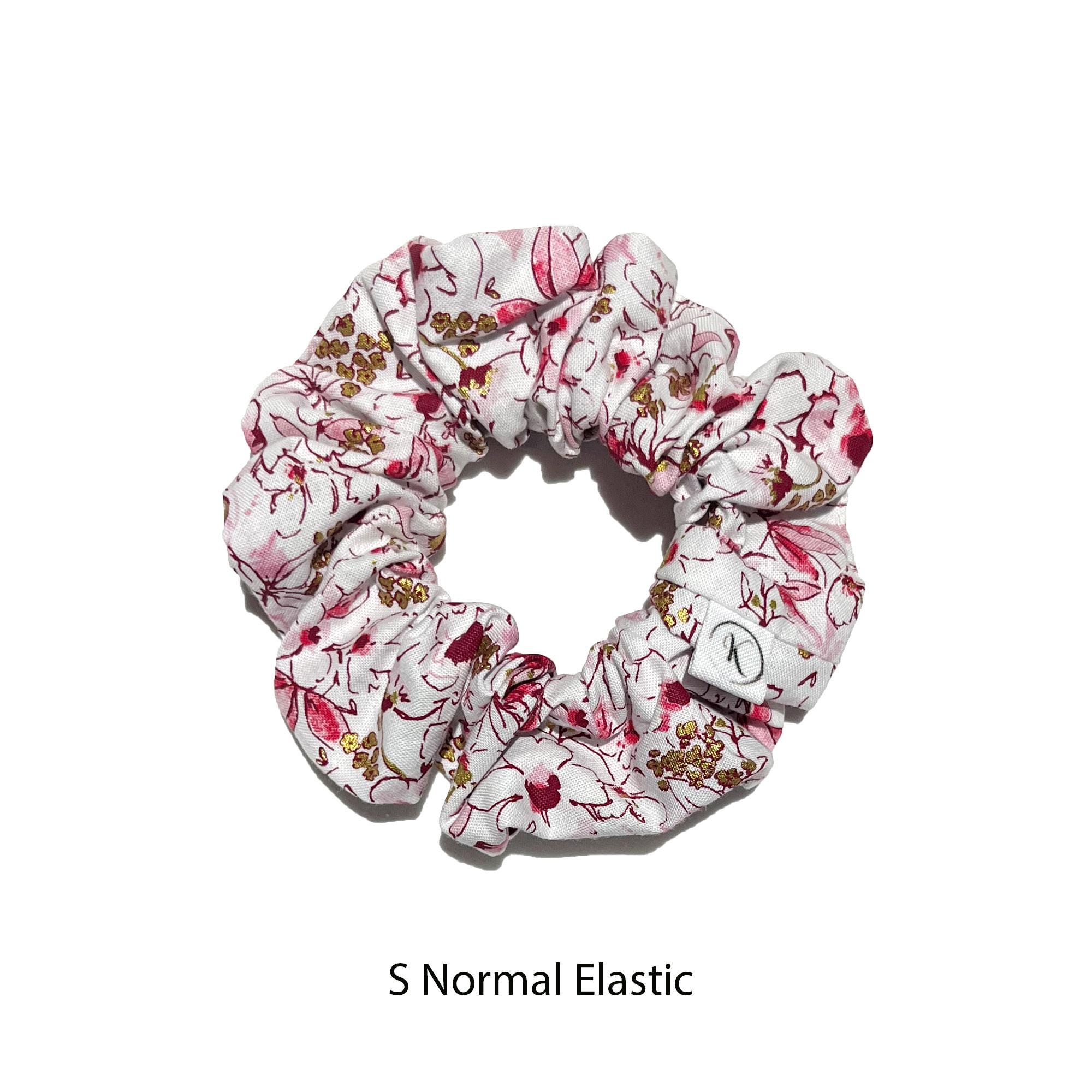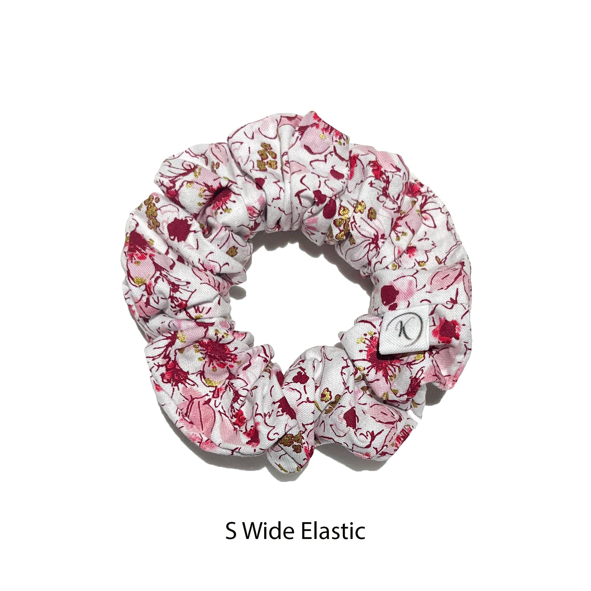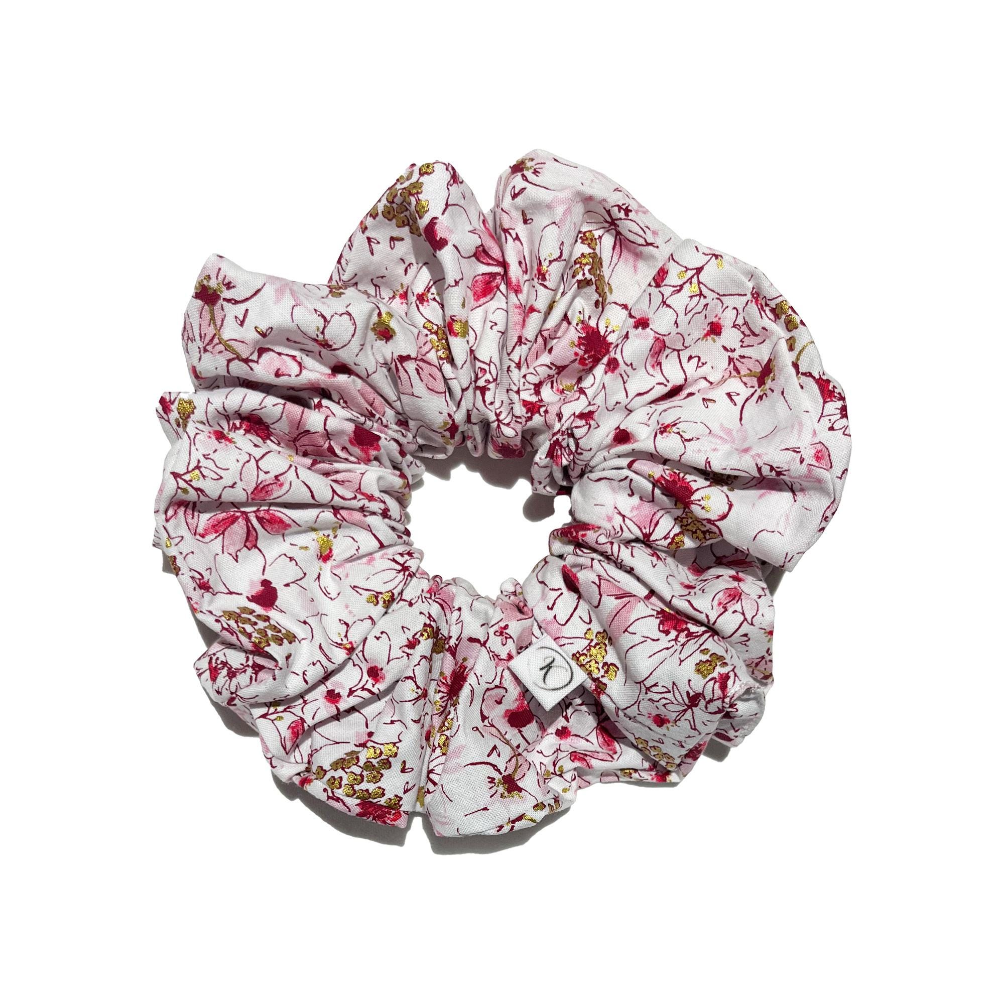 Scrunchie Coton Floral Rose Doré, Chouchou, Accessoire cheveux femme, Fait main, Idée cadeau, Elastique large ou fin, Chouchou Coton