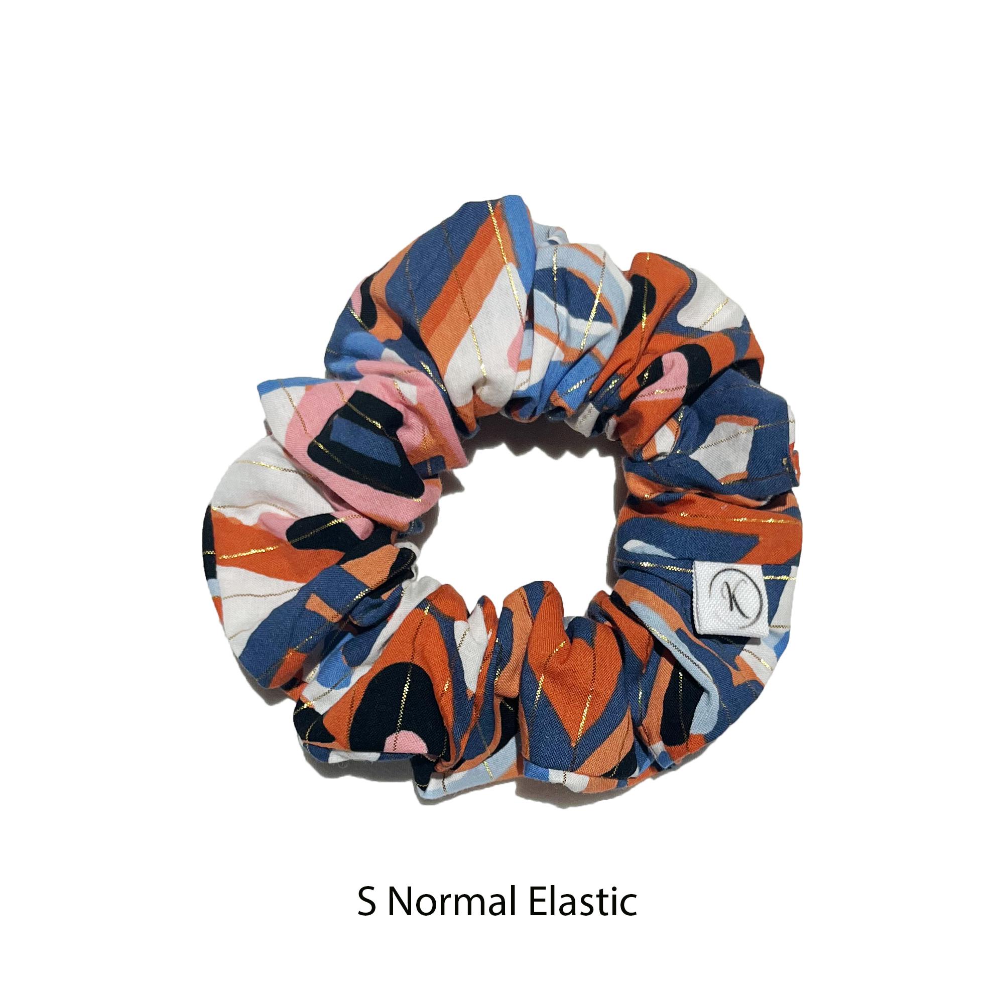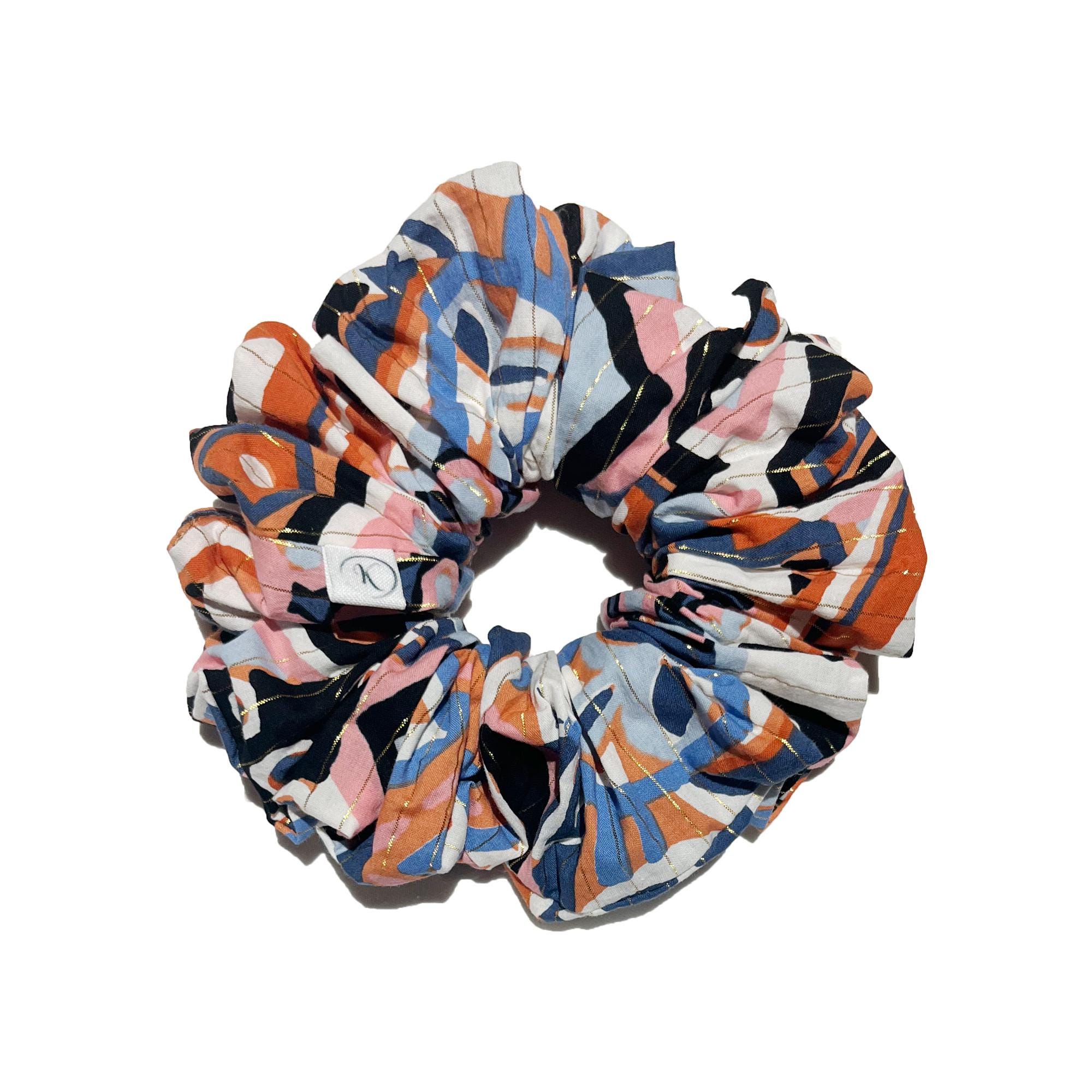 Scrunchie Coton Géométrique Ocre Bleu, Chouchou, Accessoire cheveux femme, Fait main, Idée cadeau, Elastique large ou fin, Chouchou Coton