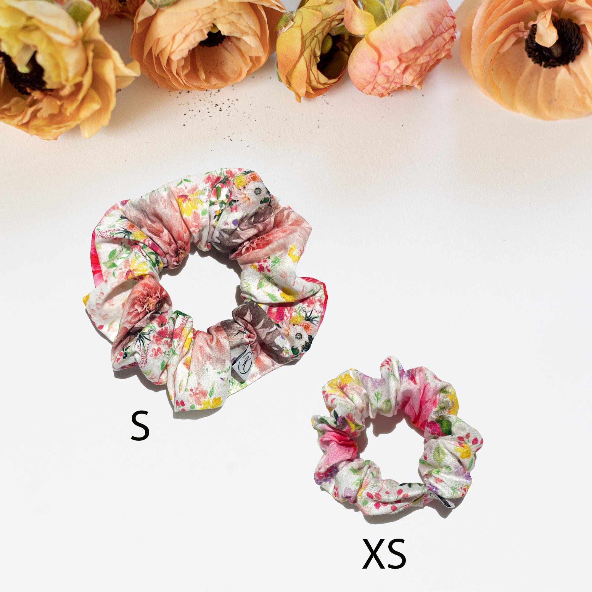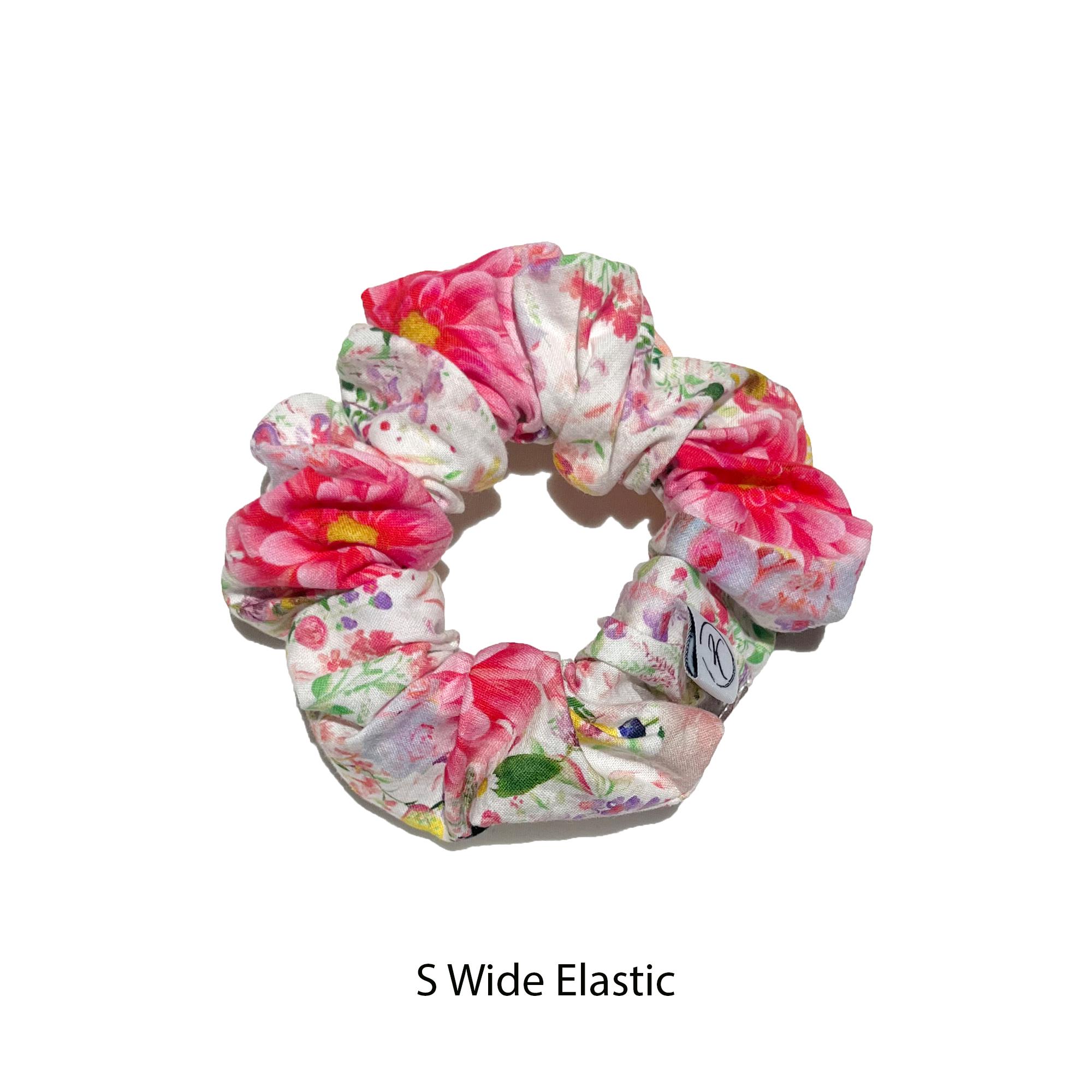 Scrunchie Coton Jardin Fleuri, Chouchou, Accessoire cheveux femme, Fait main, Idée cadeau, Elastique large ou fin, Chouchou Coton