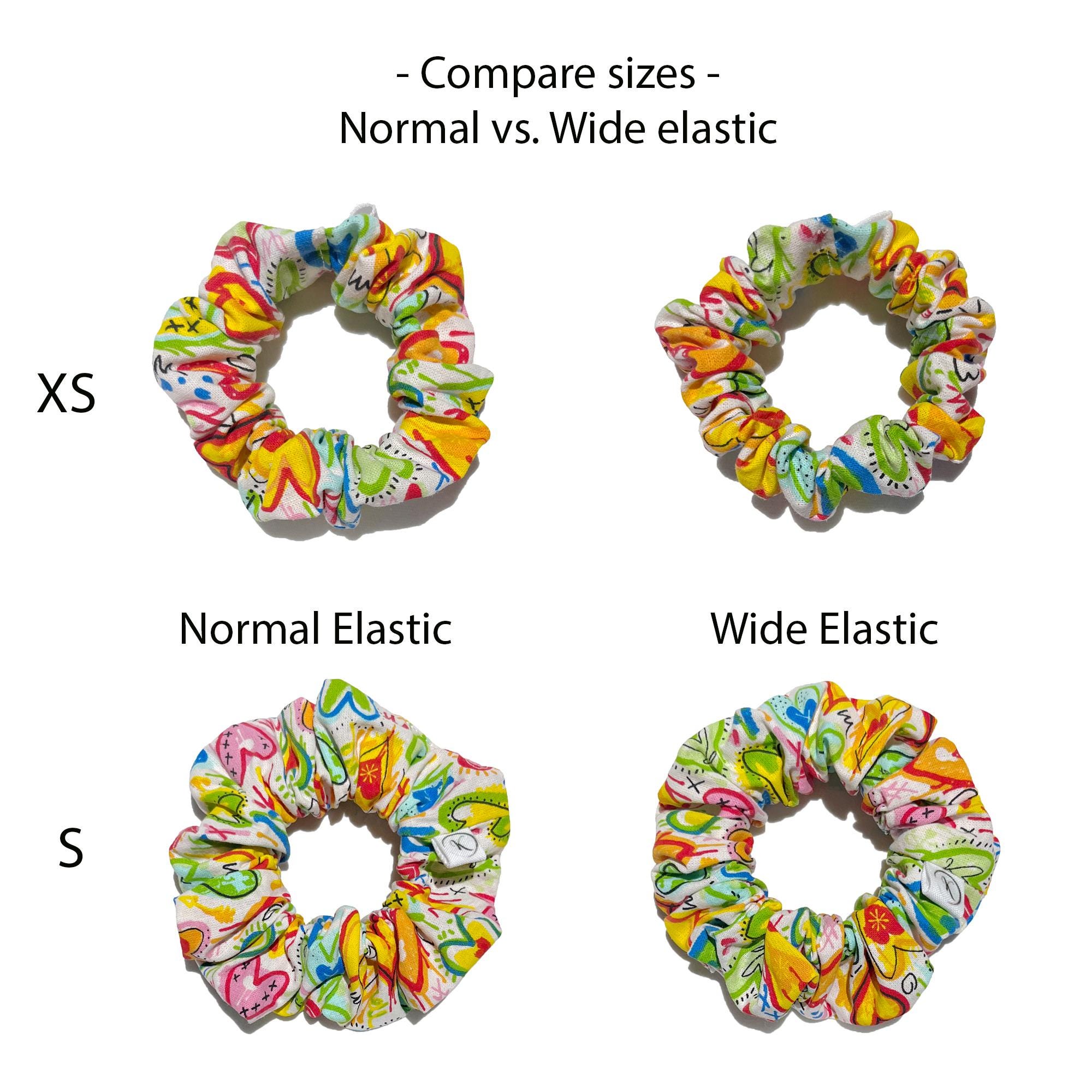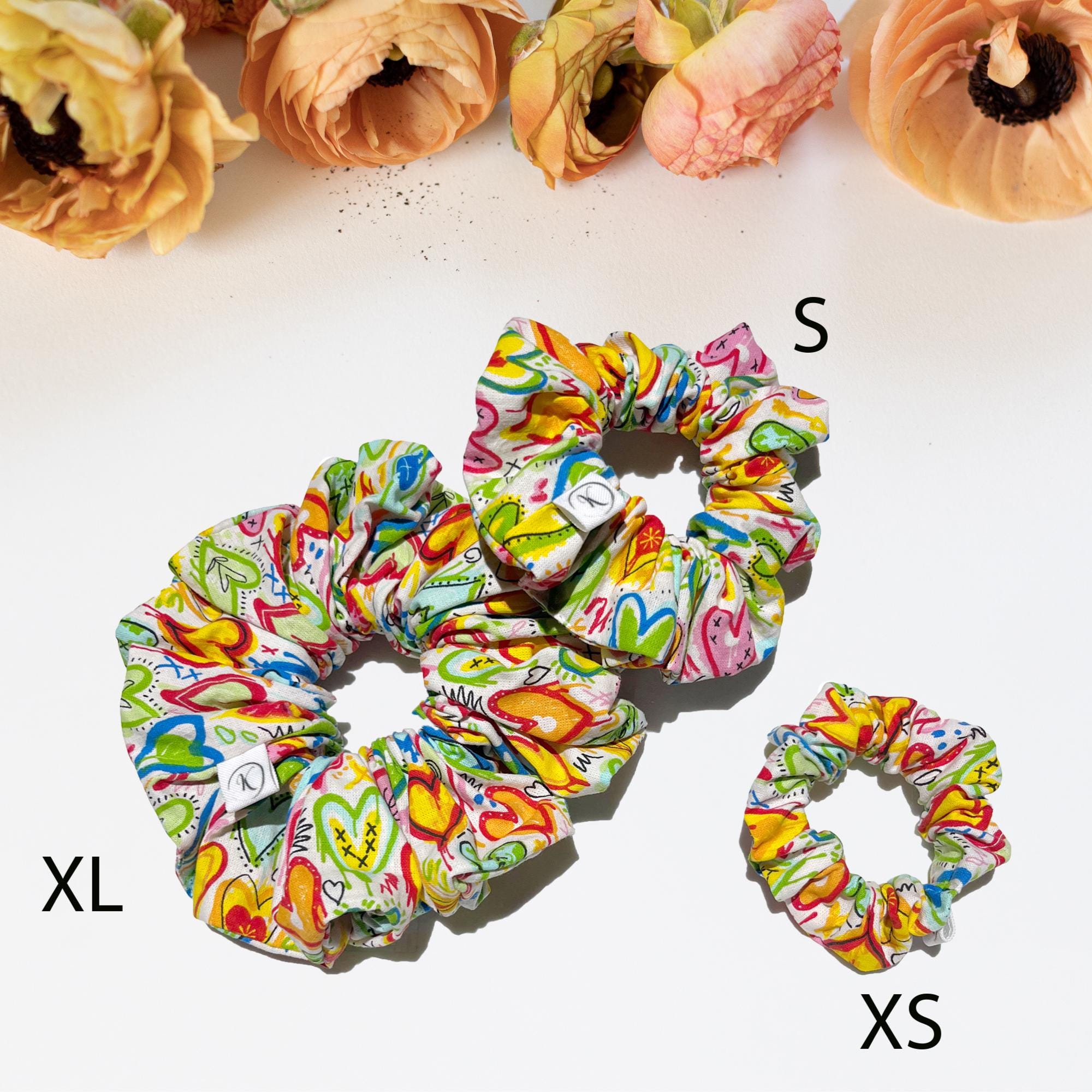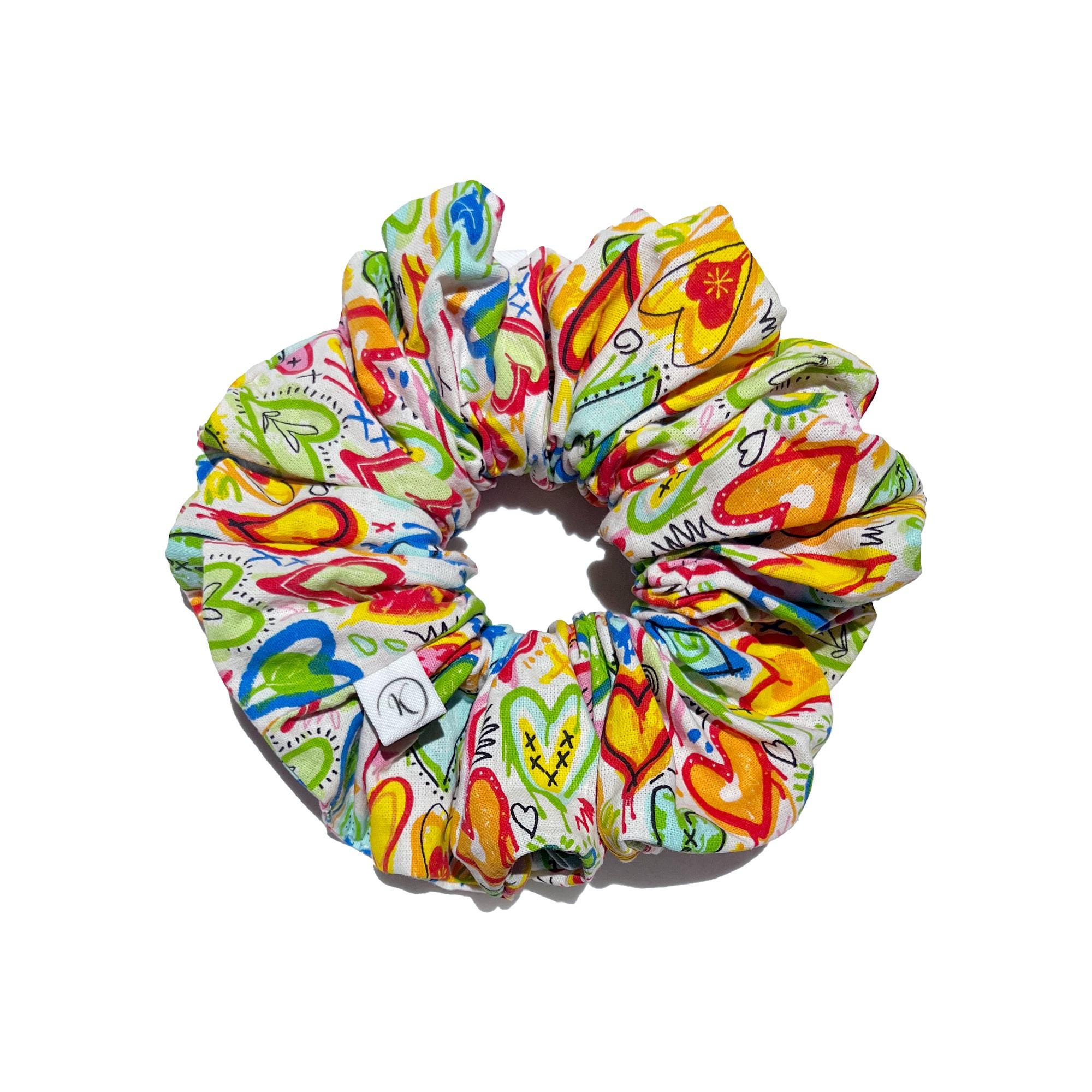 Scrunchie Coton Love Multicolore, Chouchou, Chouchou, Accessoire cheveux femme, Fait main, Idée cadeau,Elastique large ou fin,Chouchou Coton
