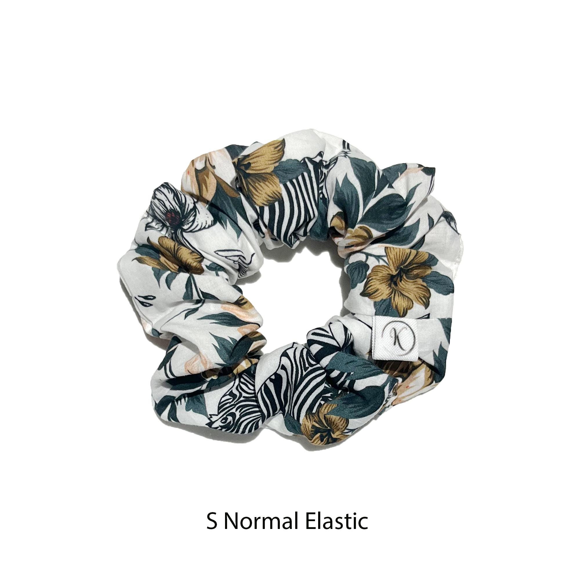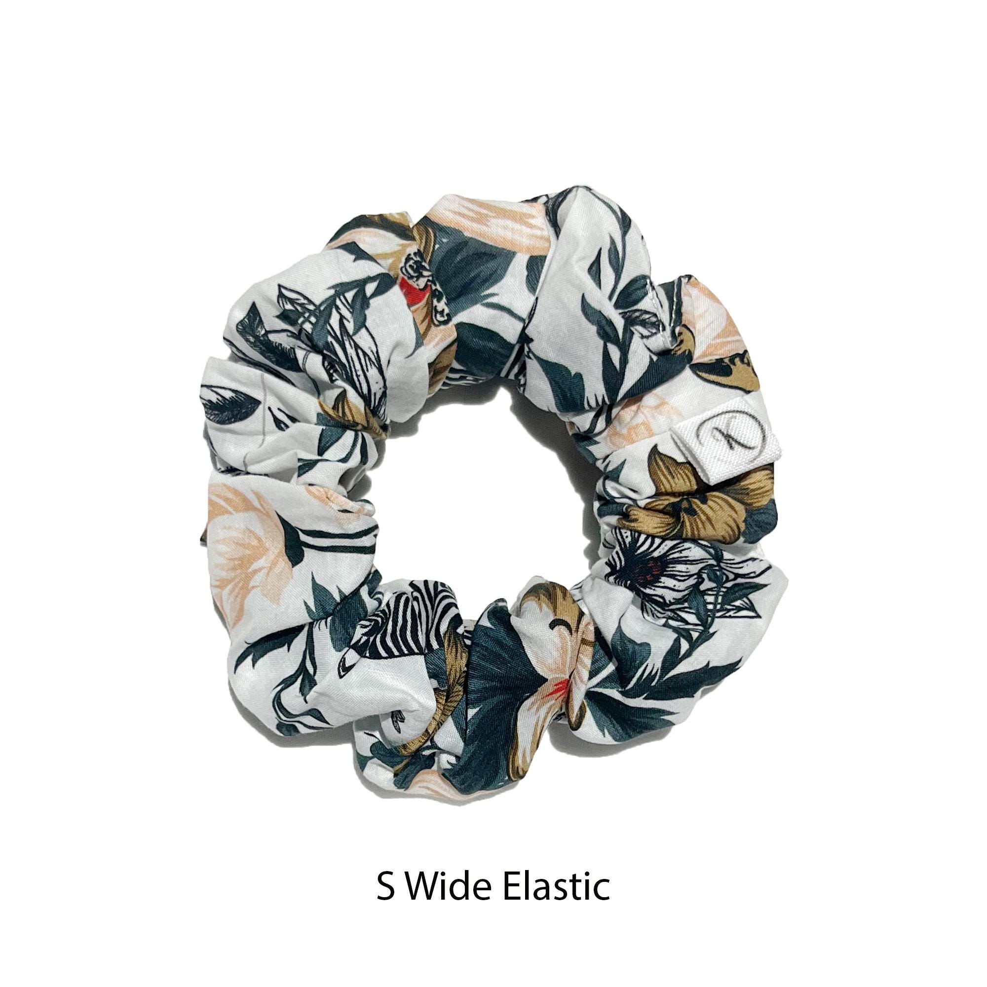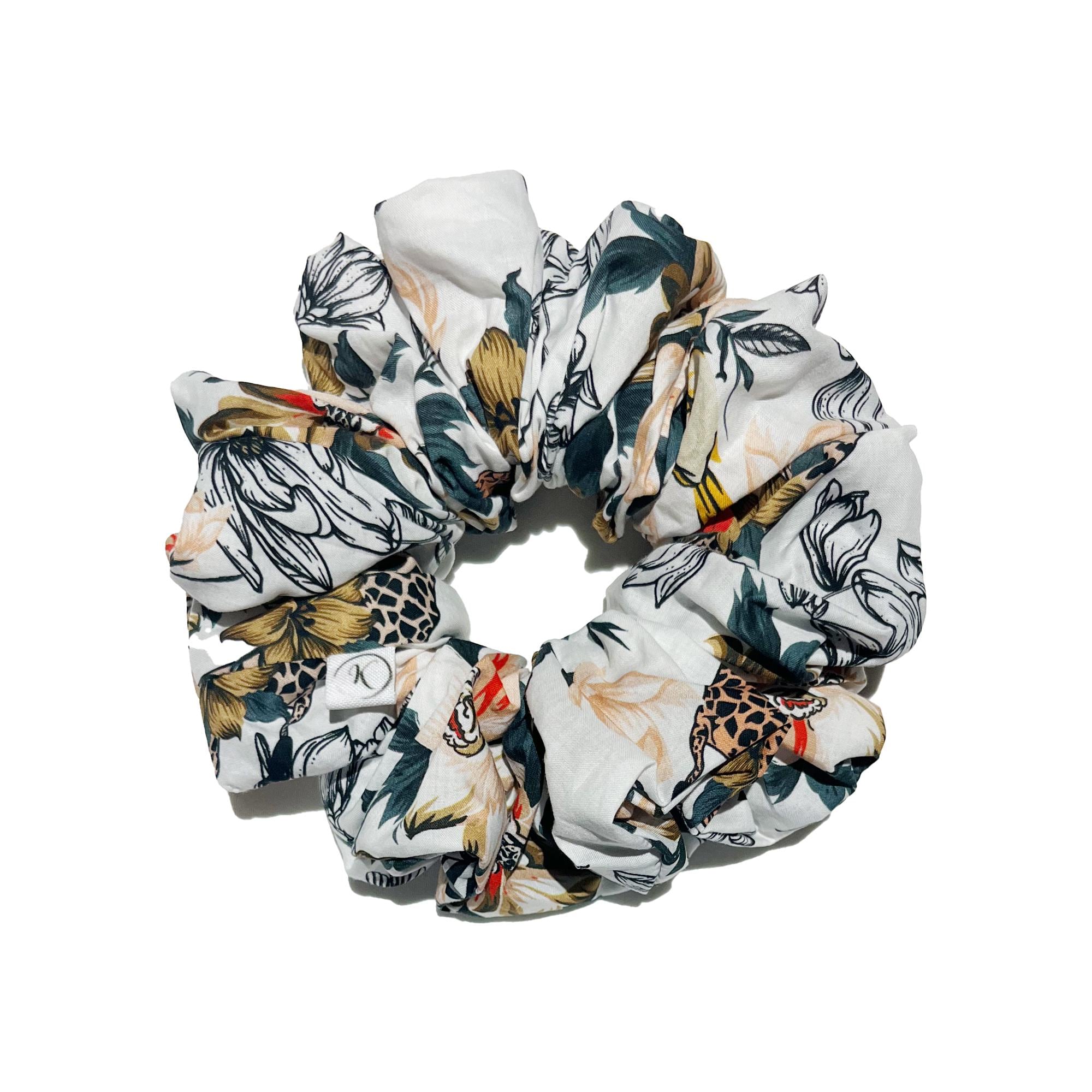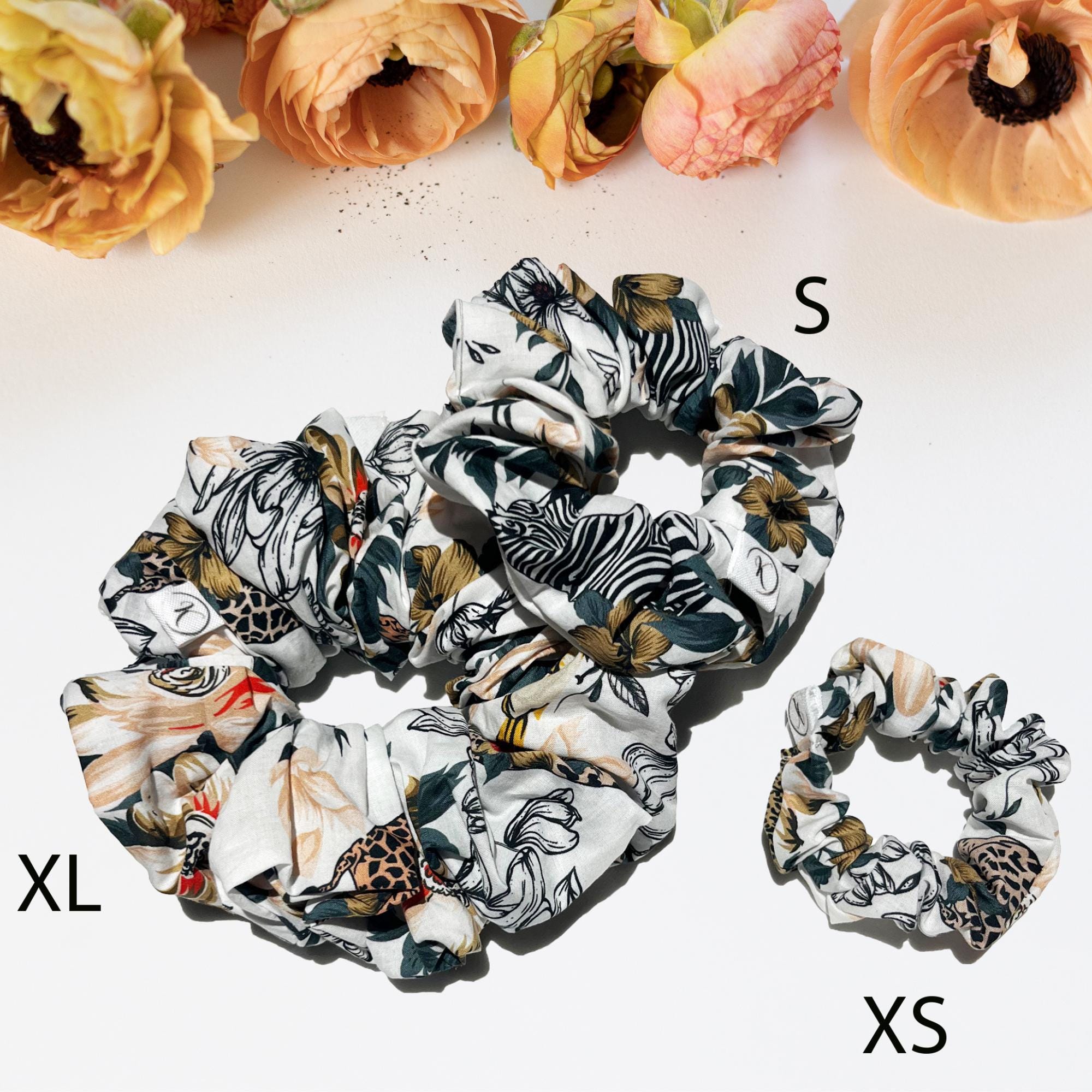 Scrunchie Coton Jungle Blanc, Chouchou, Accessoire cheveux femme, Fait main, Idée cadeau, Elastique large ou fin, Chouchou Coton, Popeline